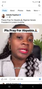 Then the last weekend episode. The peddlers of these fake news are not even creative. Same story, same narrative: Akpabio had collapsed and was rushed to the hospital in London. How many times does Akpabio have to collapse and rushed to London in a year?