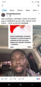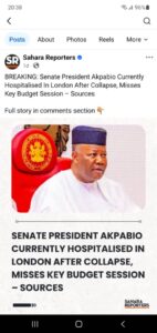 Over the weekend the internet was abuzz with the “news” that the President of the Senate, Senator Godswill Akpabio had suddenly collapsed, rushed in an air ambulance and flown to London where he was admitted into the intensive care unit of an unnamed London hospital. They claimed he was battling for his life in London.