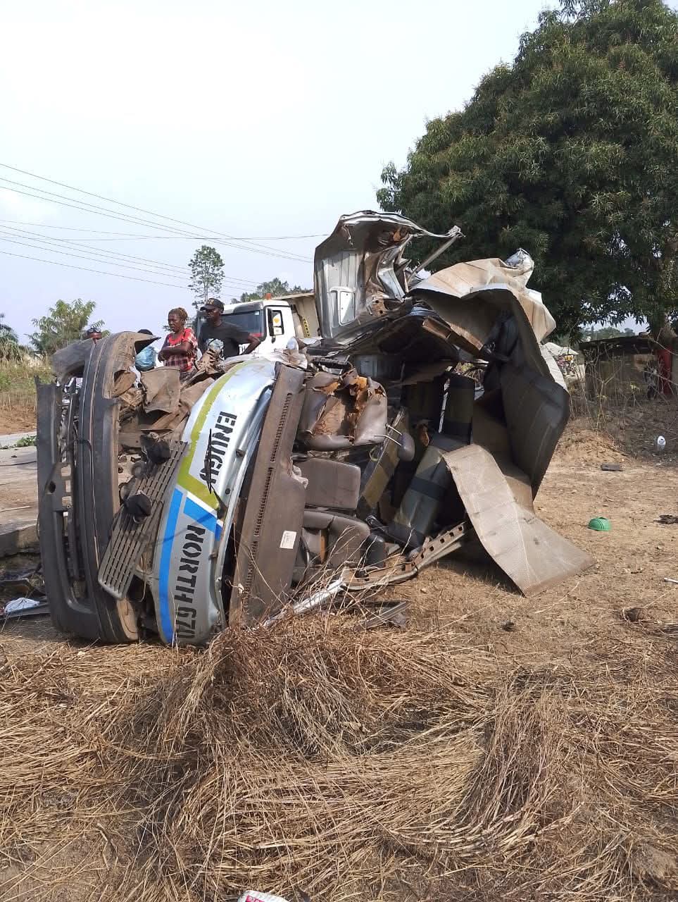 The Enugu North Mass Transit bus reportedly rammed into a parked truck beside the road, resulting in the crash.