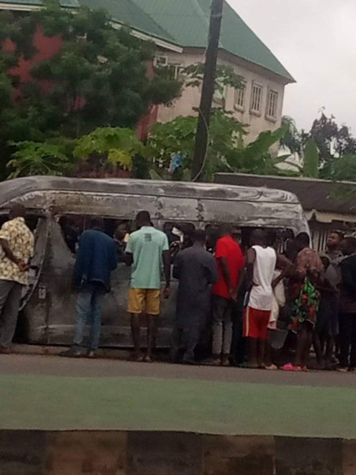 Report reaching Newsmax Nigeria has it that a bus was burnt to ashes last night beyond recognition around G-hostel junction, Abakaliki, Ebonyi State leaving its occupants unrecognisable.