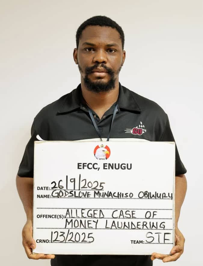 The Enugu Zonal Directorate of the Economic and Financial Crimes Commission, EFCC has arraigned one Godslove Munachiso Obiwuru, a 26-year old Federal Bureau of Investigation, FBI, suspect before Justice M. T. Segun-Bello of the Federal High Court sitting in Independence Layout, Enugu State.