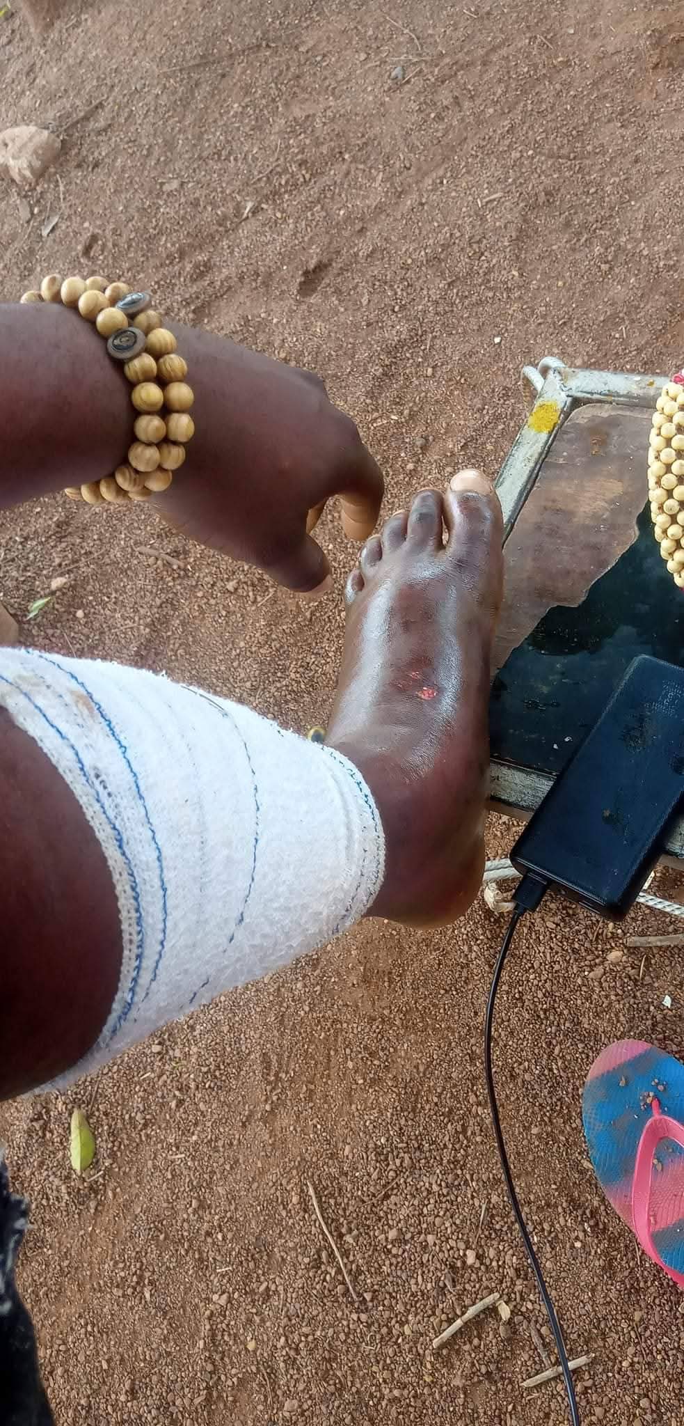I went to FETHA to get treatment, only for the doctor that I met there to ask me to use my hand to open the wound for him to see. I didn’t talk to him again. I went back home, started treating the leg at St Vincent Hospital Ndubia.