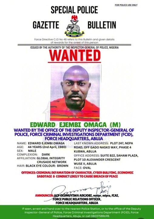 A Nigerian lawyer and civil rights activist, Edward Ejembi Omaga has been declared wanted by the Nigeria Police Force, NPF.