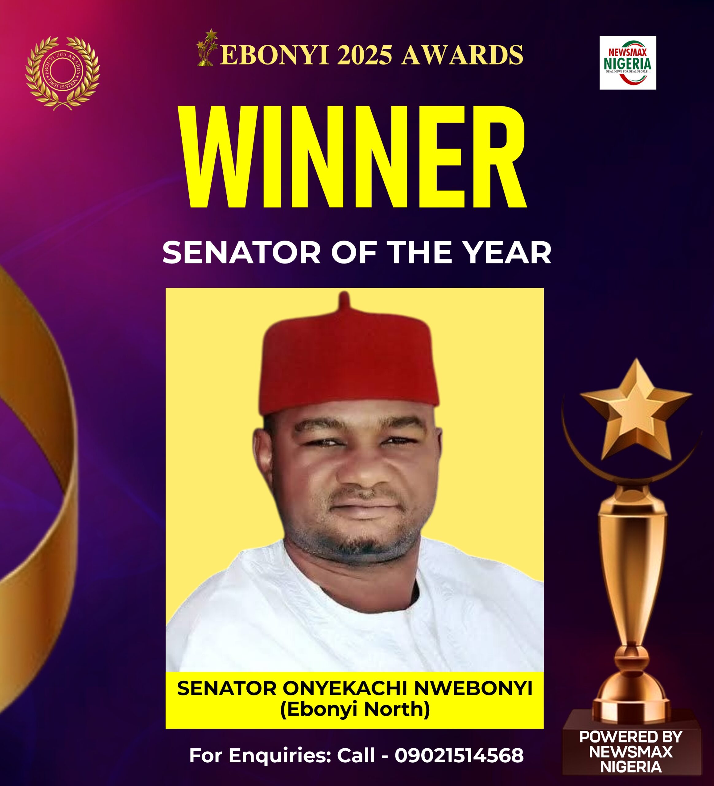 The Deputy Chief Whip of the Senate and Senator representing Ebonyi North, Senator Peter Onyekachi Nwebonyi has emerged “2025 Ebonyi Senator Of The Year”.